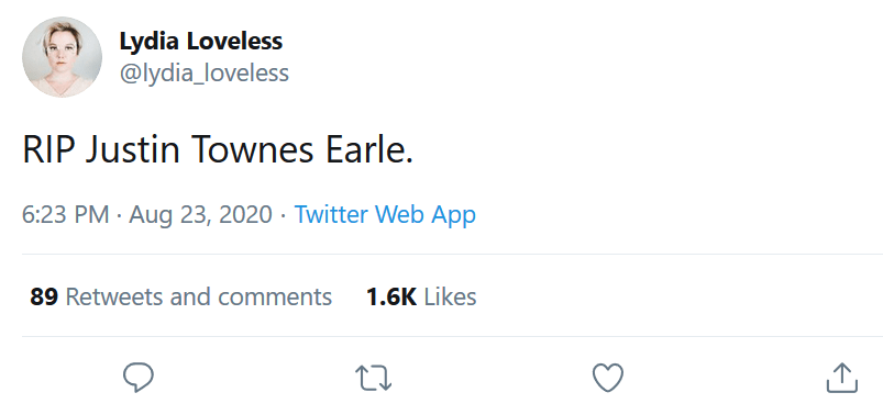 But then came the news Sunday night. I was scrolling through Twitter and I saw this tweet by Lydia Loveless.
